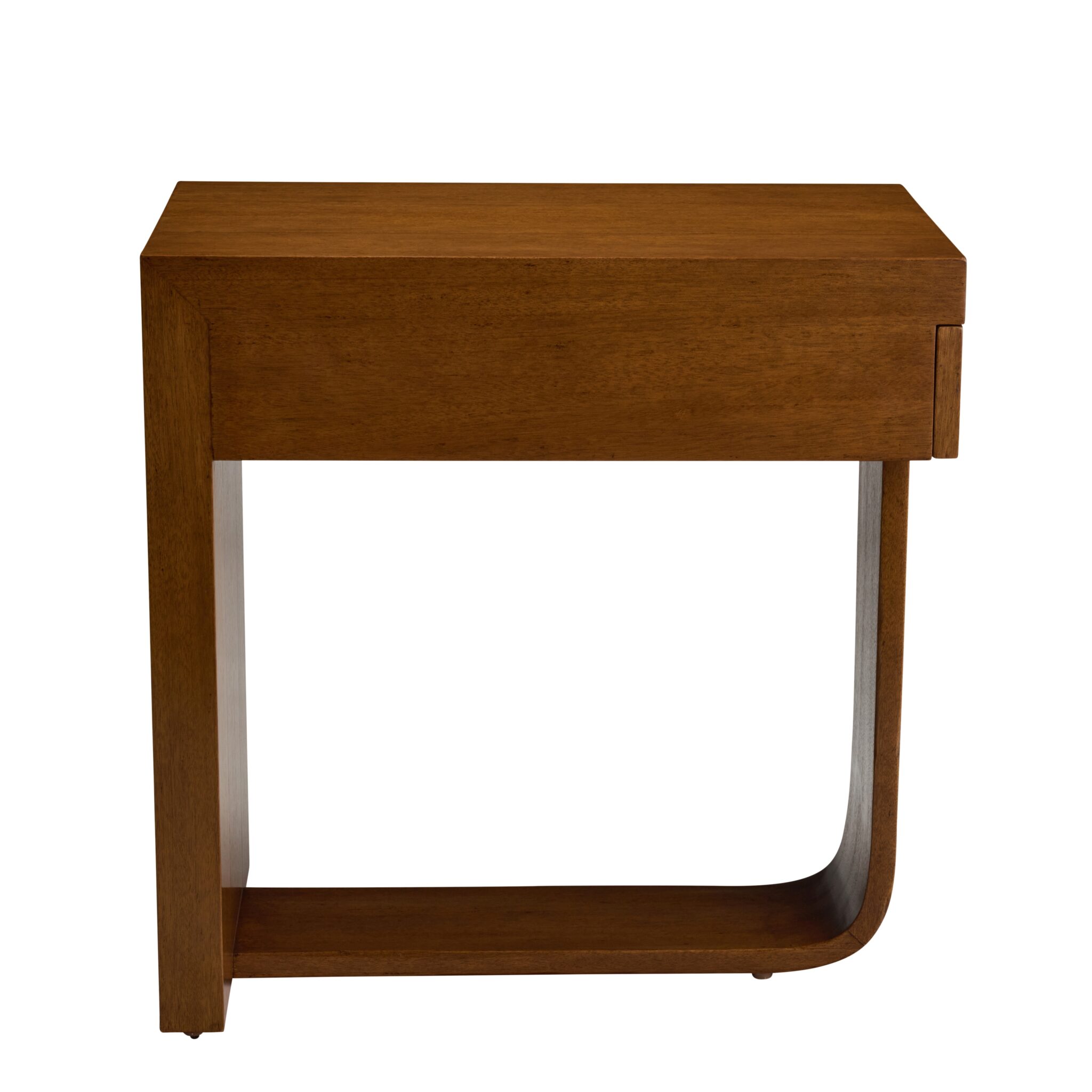 Nightstand featuring a streamlined modern base and one drawer at 16″ side with finger groove.
