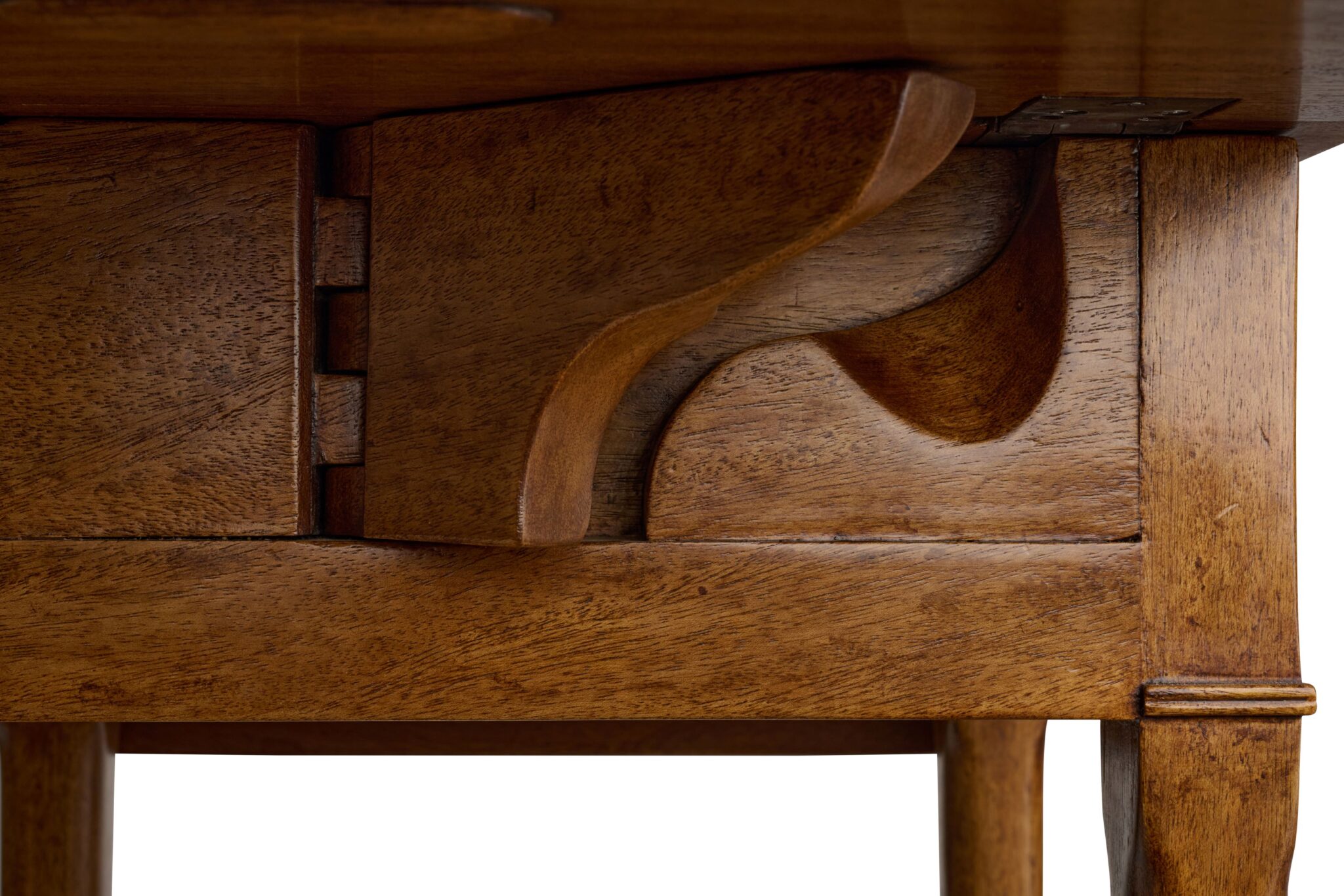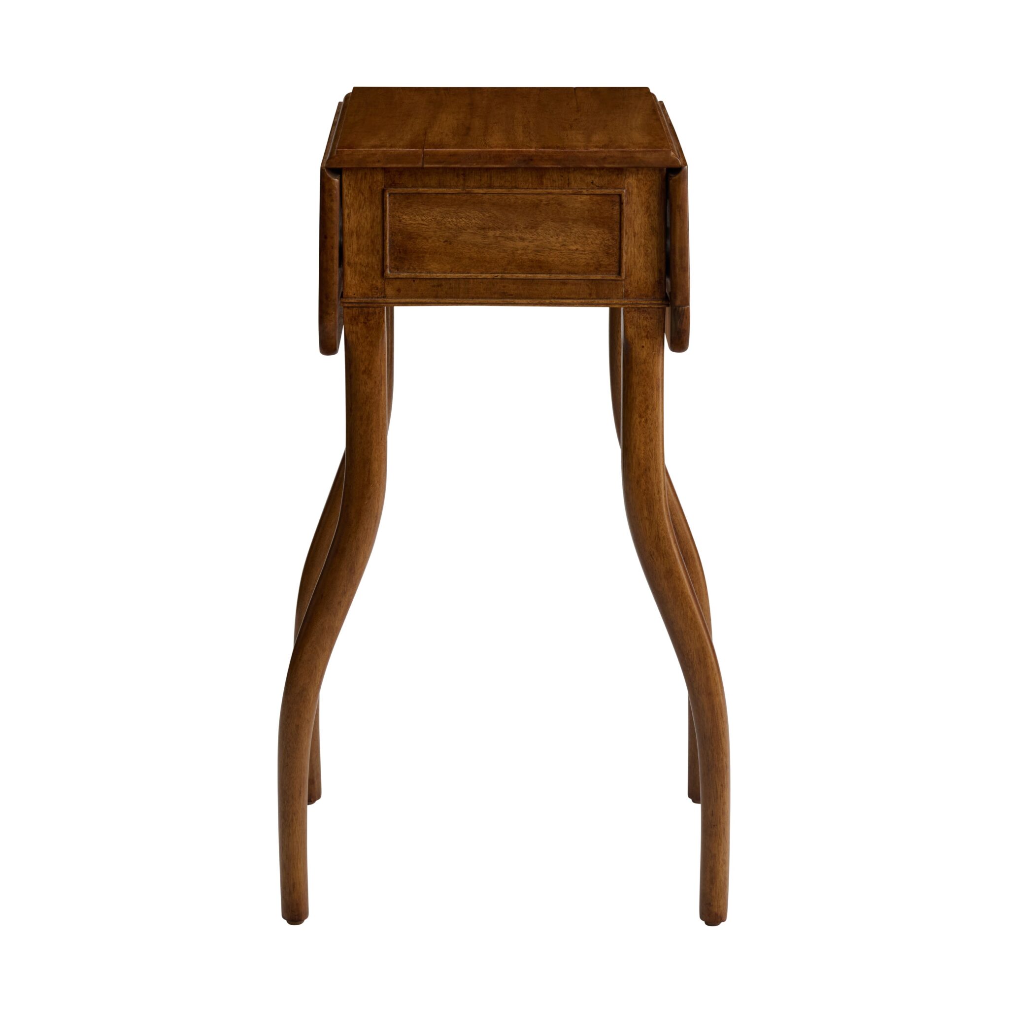 Table featuring curved legs, two drop leaves and drawer in apron.
