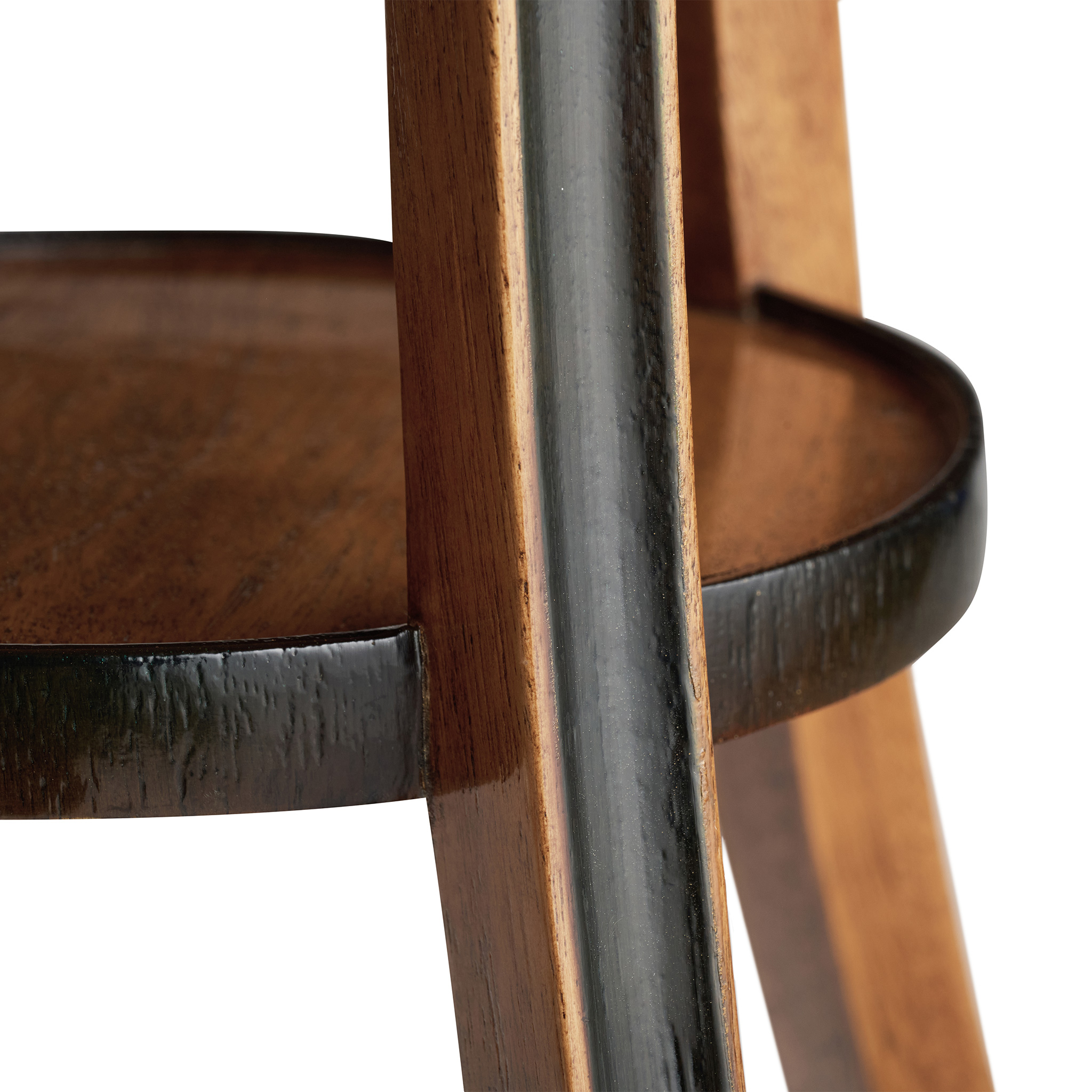Finish: Medium Mahogany, M101 with darker contrasting detail on legs, top and shelf.